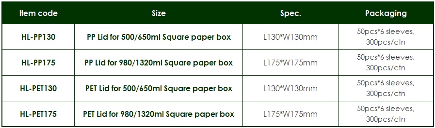 PET Lid For Square Paper Box